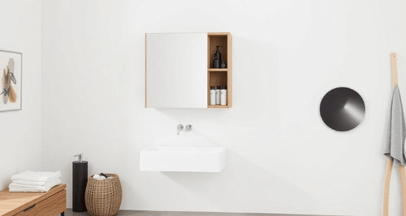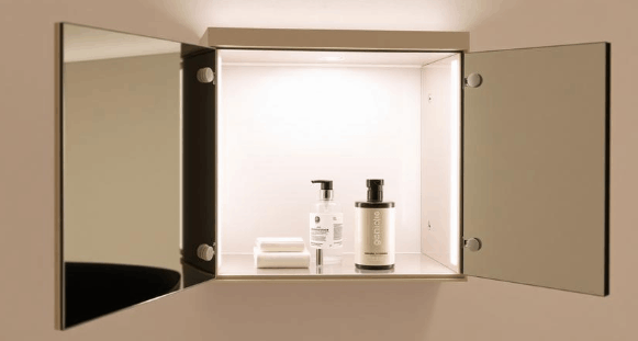 A practical solution that combines a mirror with hidden storage and soft, diffused LED lighting. The shallow depth is perfect for walls where space is limited. The interior shelf is adjustable to accommodate different items. The touch-sensitive switch offers convenient operation.